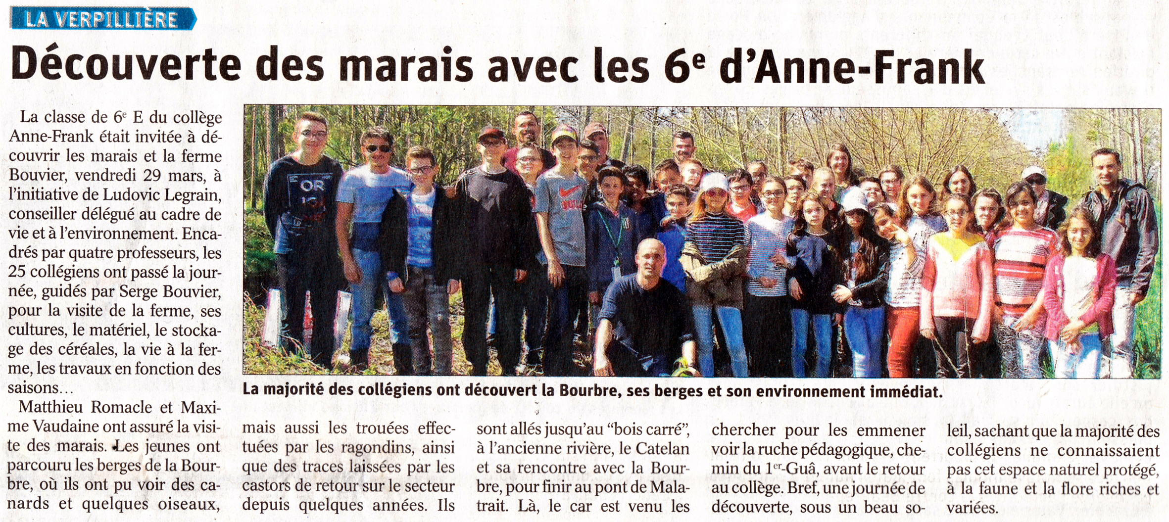 Dans le cadre de la Journée de l'environnement prévue samedi 6 avril sur La Verpillière, les élèves de 6eF ont participé au nettoyage des marais vendredi 5 avril de 8h à 10h. Les élèves étaient venus une 1ère fois sur le site pour faire de la course d'orientation. Aujourd'hui ils étaient par groupe de 3, équipés de gants et de sacs poubelles pour ramasser un maximum de déchets. Les élèves se sont montrés très motivés et l'opération a été une réussite.