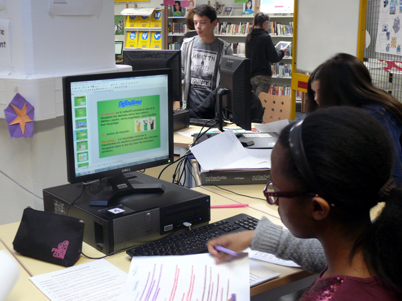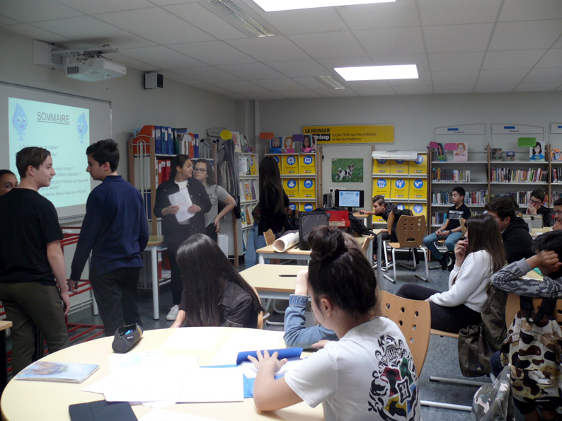 Les interventions des documentalistes ont été multiples auprès des classes de 5 ème dans le cadre de la semaine du développement durable : aide à la recherche documentaire, au travail d'écriture de saynètes, expression orale, travail sur l'affiche et le slogan publicitaire.
